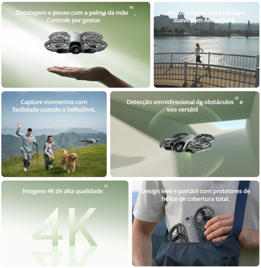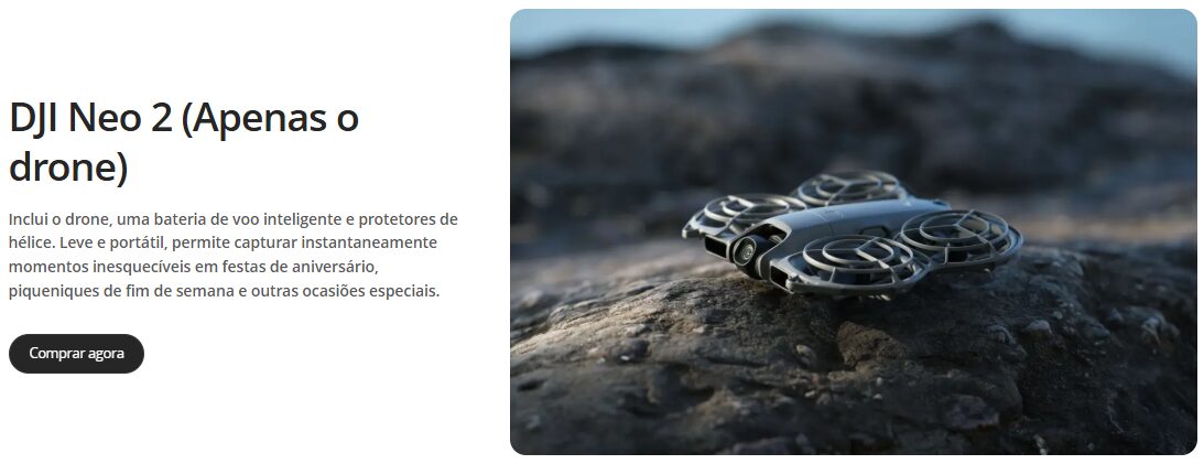 Isso quer dizer que caso você tenha um combo com o drone Neo, controle FPV Remoto Controller 3 ou Motion Controller 3, e óculos Goggles 3 ou Goggles N3, poderá comprar apenas o drone Neo 2 em seu combo mais simples e usar esses acessórios para controlar.
