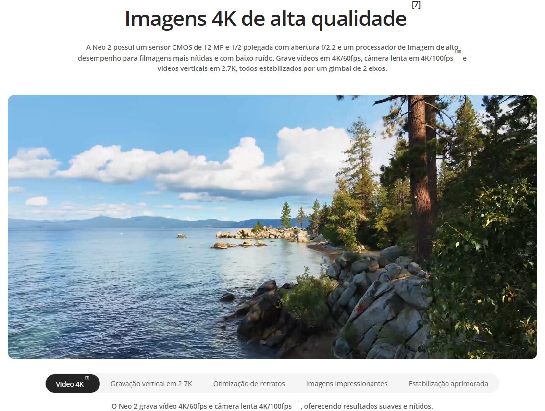 Mesmo sendo um drone pequeno e o modelo mais barato da DJI depois do Neo, o Neo 2 tem uma série de funcionalidade automáticas e tecnologias de última geração.