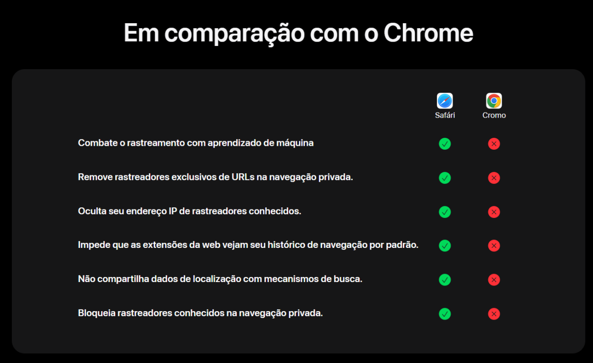 Ao contrário do Chrome, o Safari realmente ajuda a proteger sua privacidade