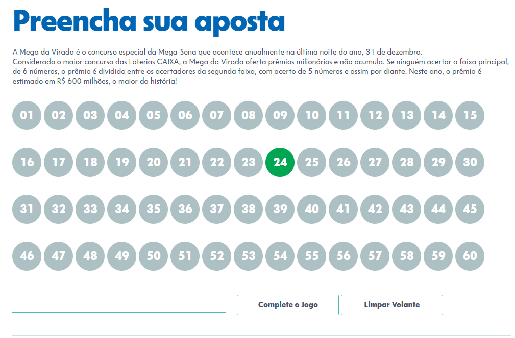 No ambiente digital, vale considerar que o sistema exige o valor mínimo total de R$ 30 por carrinho, o que pode ser preenchido com várias apostas simples ou combinações diferentes.